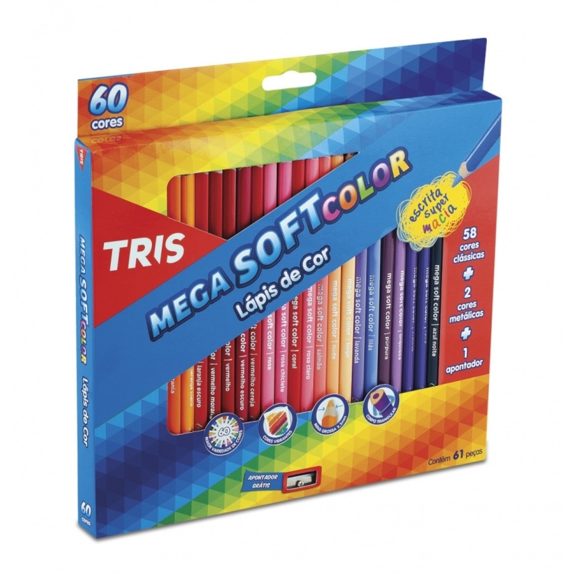 Lapis de Cor 60 cores TRIS Mega Softcolor + Apontador